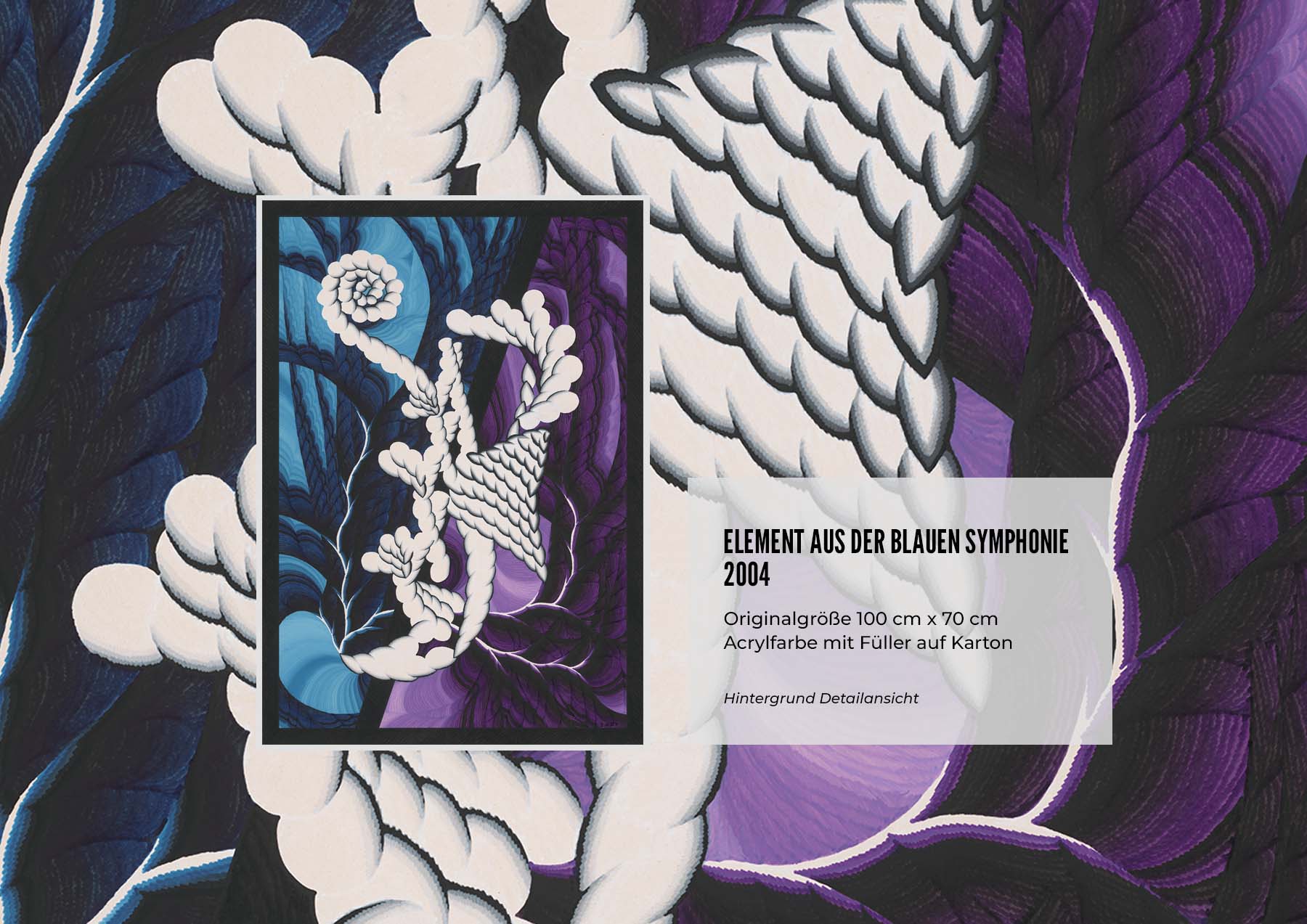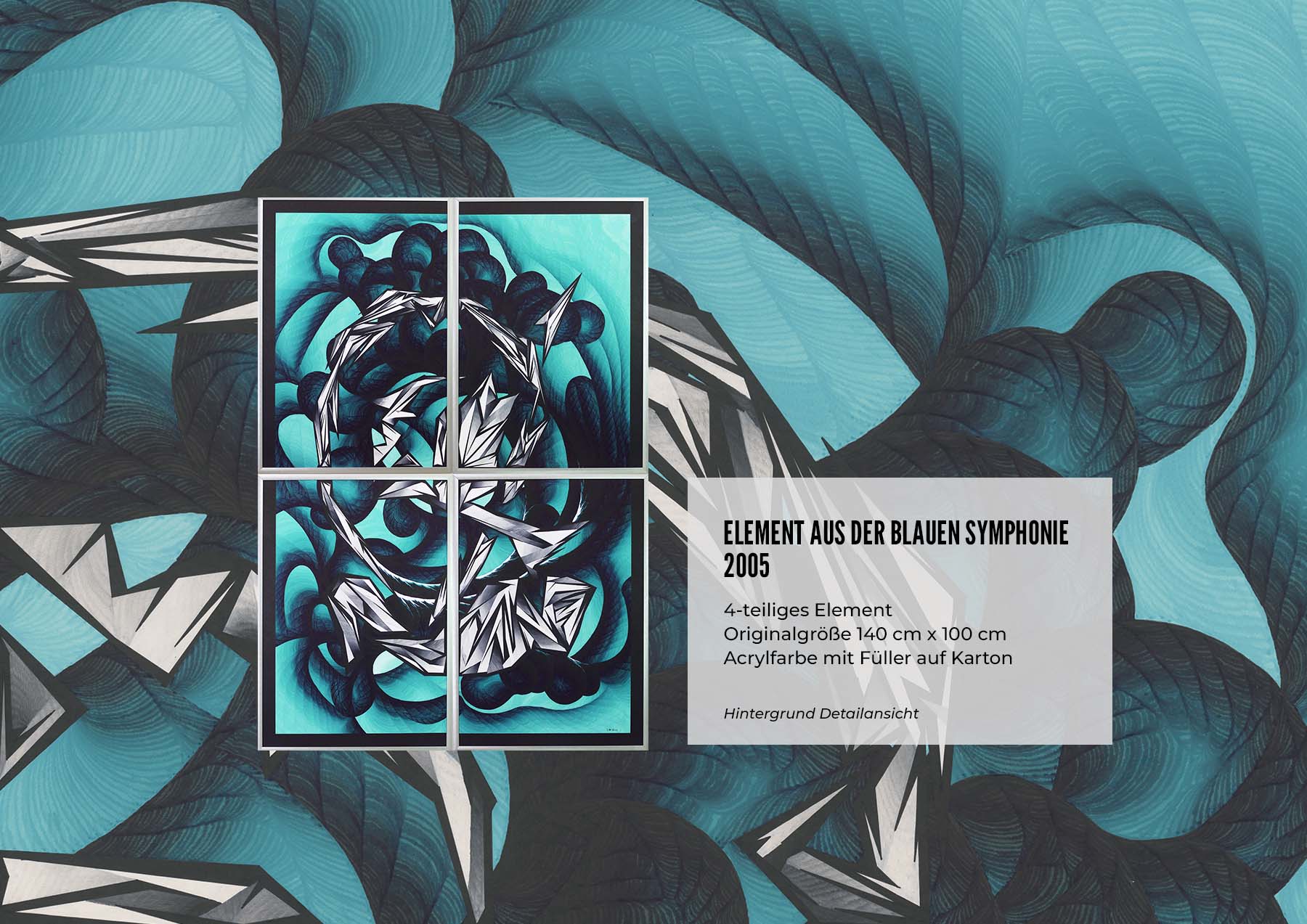 Die monumentale Malerei bildet das Zentrum von Axels künstlerischem Werk. Seine überdimensionalen Arbeiten bezeichnet er als „Symphonien“ – sie sind eine Synthese aus Malerei und Musik. Die Anlehnung an die Welt der Musik ist ist bewusst gewählt. So wie eine klassische Symphonie nicht mit einem Mal anhören erfasst werden kann, sind auch Axels Symphonien nicht mit einem Blick zu greifen. Ihre detailreiche Motivvielfalt fordert den Blick heraus und offenbart erst nach und nach im Lauf der Zeit ihre emotionale und dramatische Tiefe.